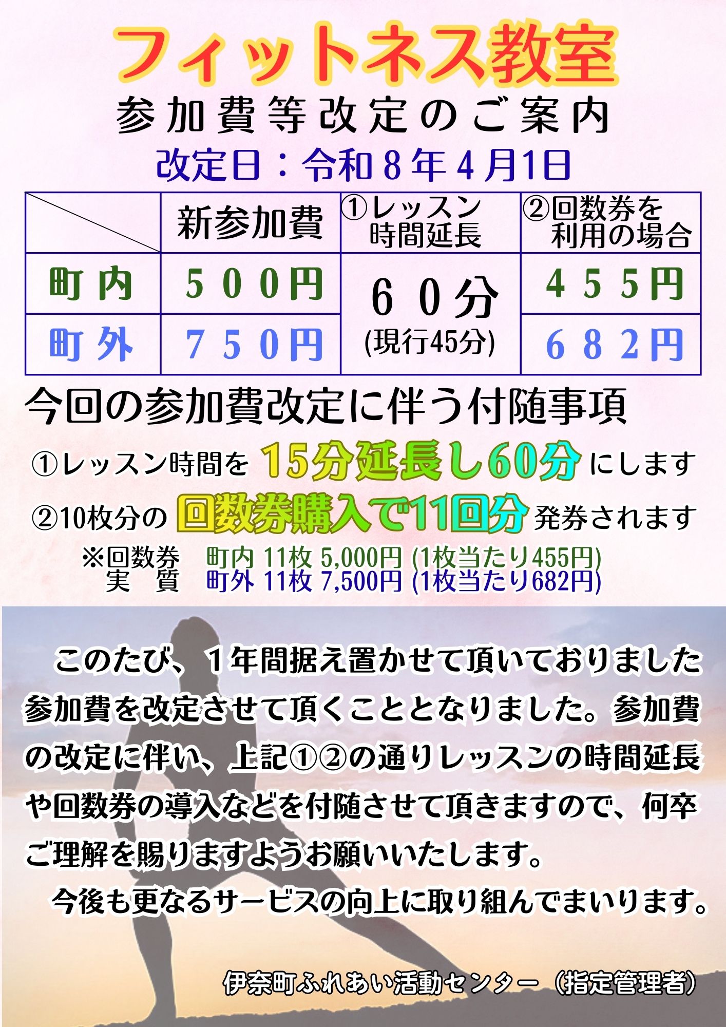 参加費の改定に伴い、レッスンの時間延長や回数券の導入などを付随させて頂きますので、