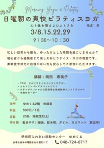 日曜朝の爽快ピラティスヨガ教室