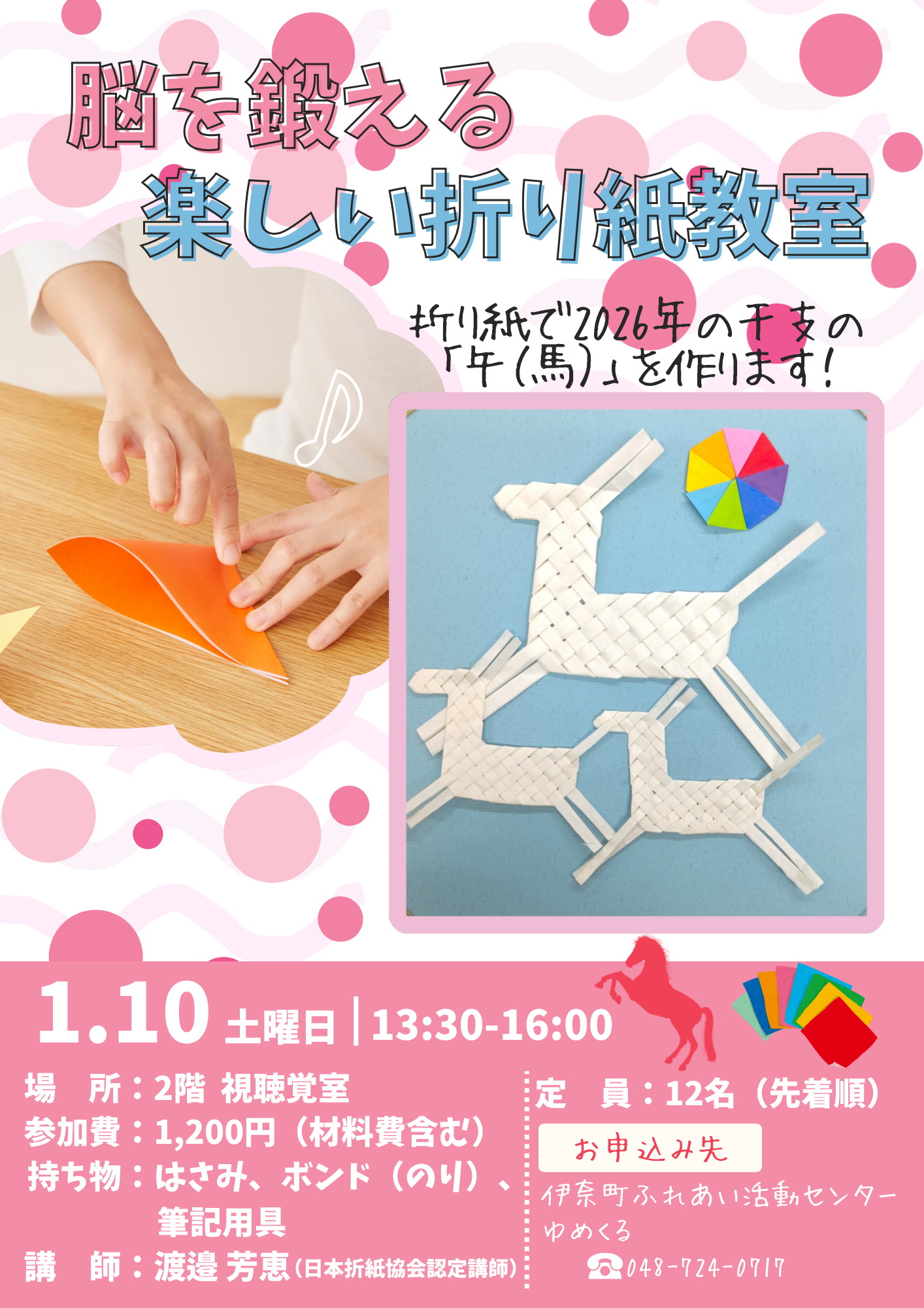 新しい年を迎え、縁起のよい飛躍する「馬」を作ります。