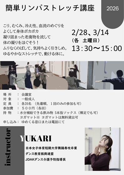 各回異なるテーマをもって自宅でも出来る簡単なセルフリンパマッサージを行います。凝り固まった老廃物を流して身体をほぐしましょう。