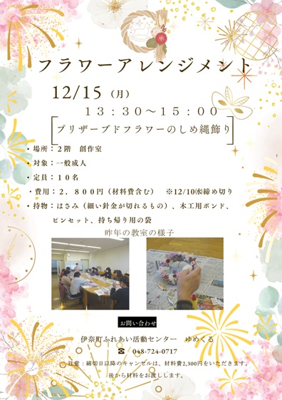 フラワーアレンジメント教室 【プリザーブドフラワーのしめ縄飾り】
